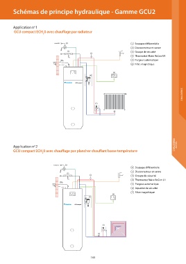 Schémas de principe hydraulique - Gamme GCU2 o Application n 1 GCU compact ECH 0 avec chauffage par radiateur 2 CHAUDIÈRES CHAUDIÈRES AU SOL Application n 2 o GCU compact ECH 0 avec chauffage par plancher chauffant basse température 2 165